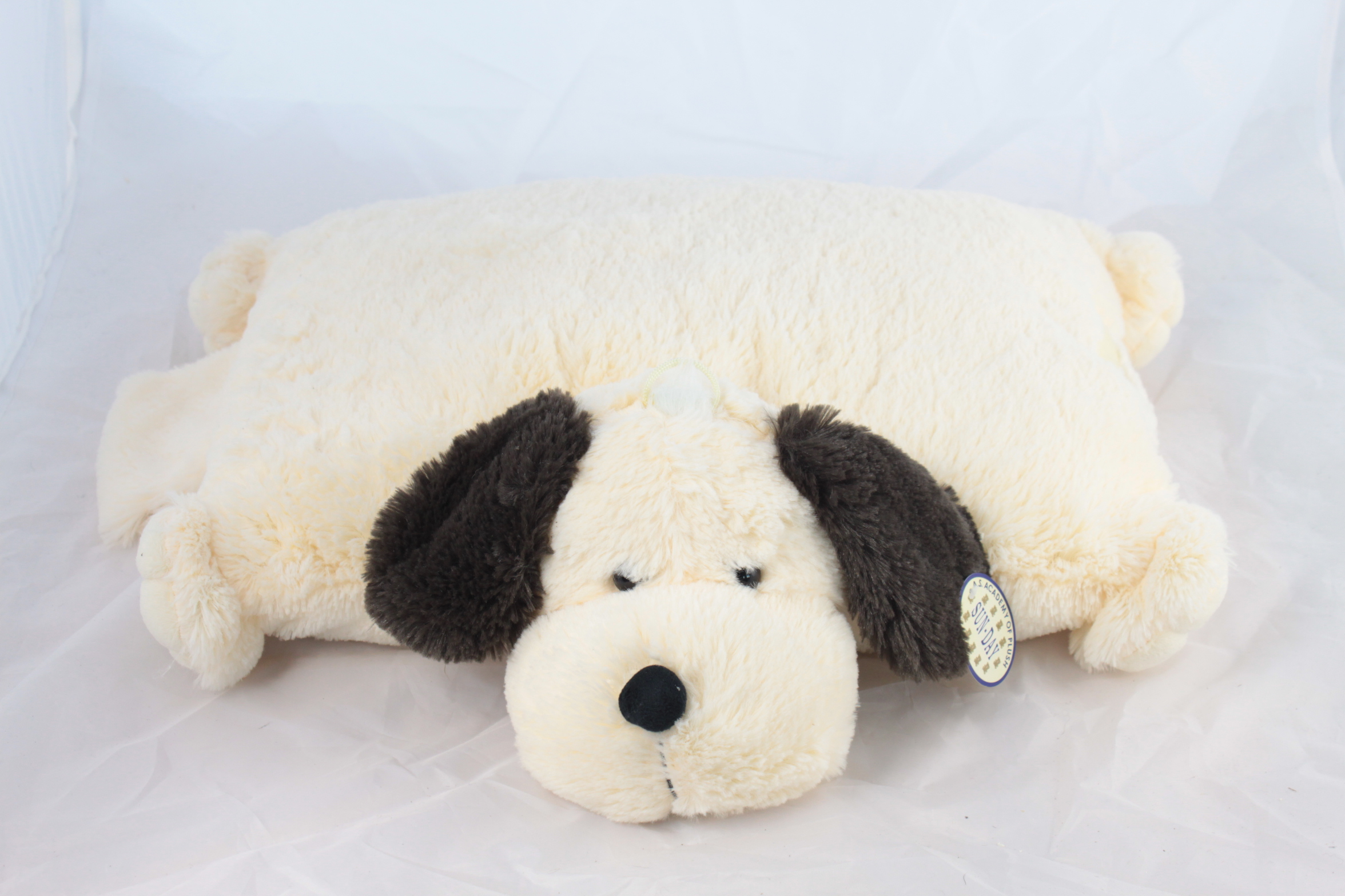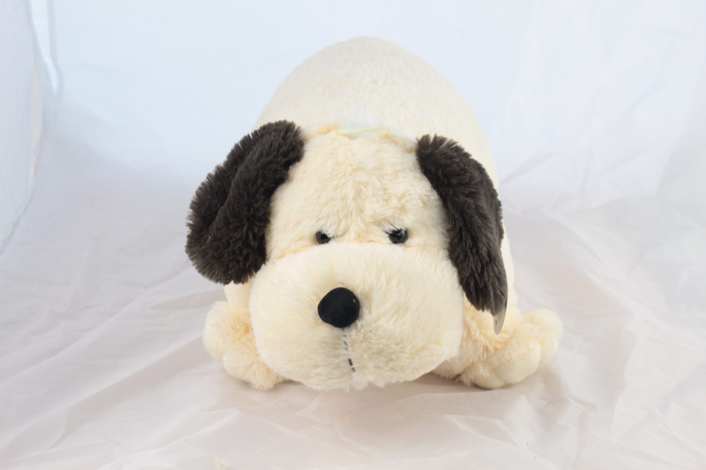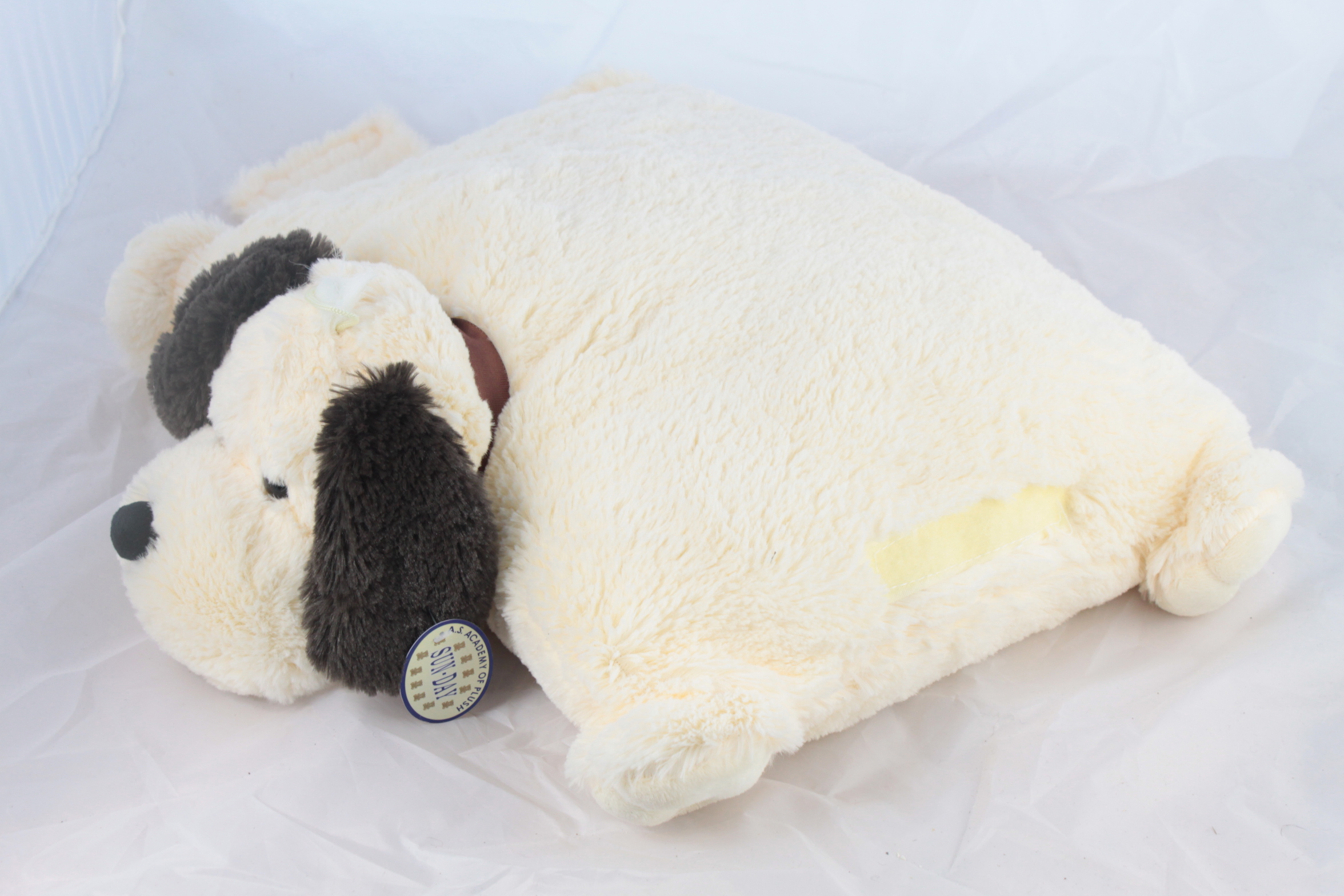 Poduszka składana w postaci pieska. Maskotka jest wykonana z przyjemnego materiału, wypełniona pluszem, miękka i bardzo miła w dotyku. Poduszka posiada rzepy, którymi spina się w postać stojącego pieska. Poduszka może posłużyć jako podgłówek do spania, ale też zabawka, przytulanka lub artykuł dekoracyjny.