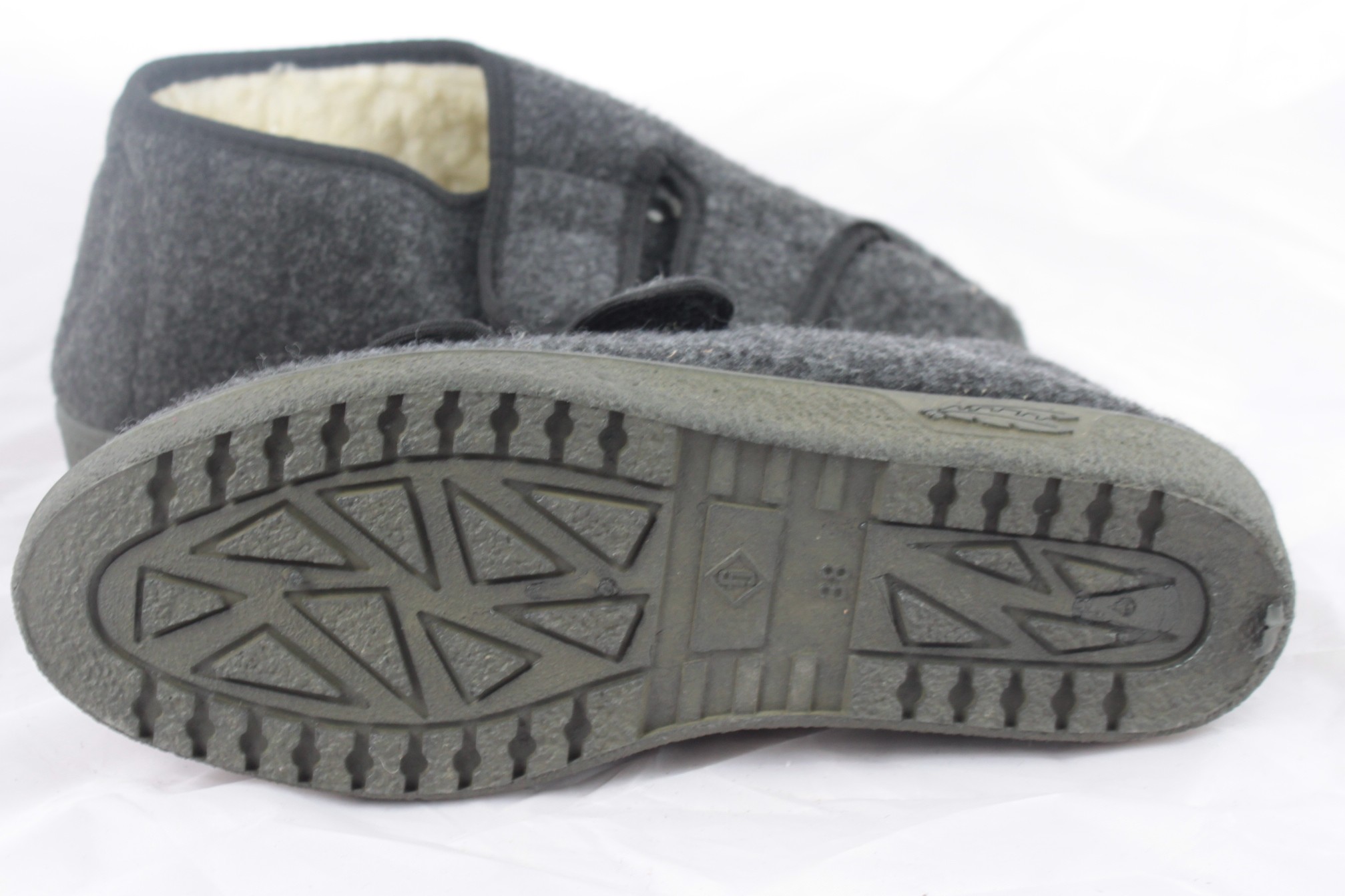 - Obuwie: ze sztywnego filcu, podeszwa ciężka, solidna, gruba gumy antypoślizgowej